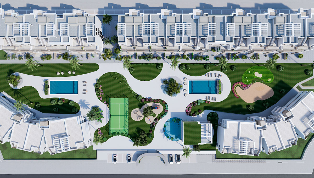 The promotion AREAbeach III is developed on a unique and unrepeatable plot of land, bordering the natural area of the salt lagoon, enjoying its biodiversity and unique environment, close to the best beaches of the Mediterranean. AREAbeach III is located in the El Raso of Guardamar del SeguraThe area has all kinds of services and comforts. At the same time, thanks to the proximity of El Moncayo beach, you can go for a bike ride and enjoy the best climate on the Costa Blanca.