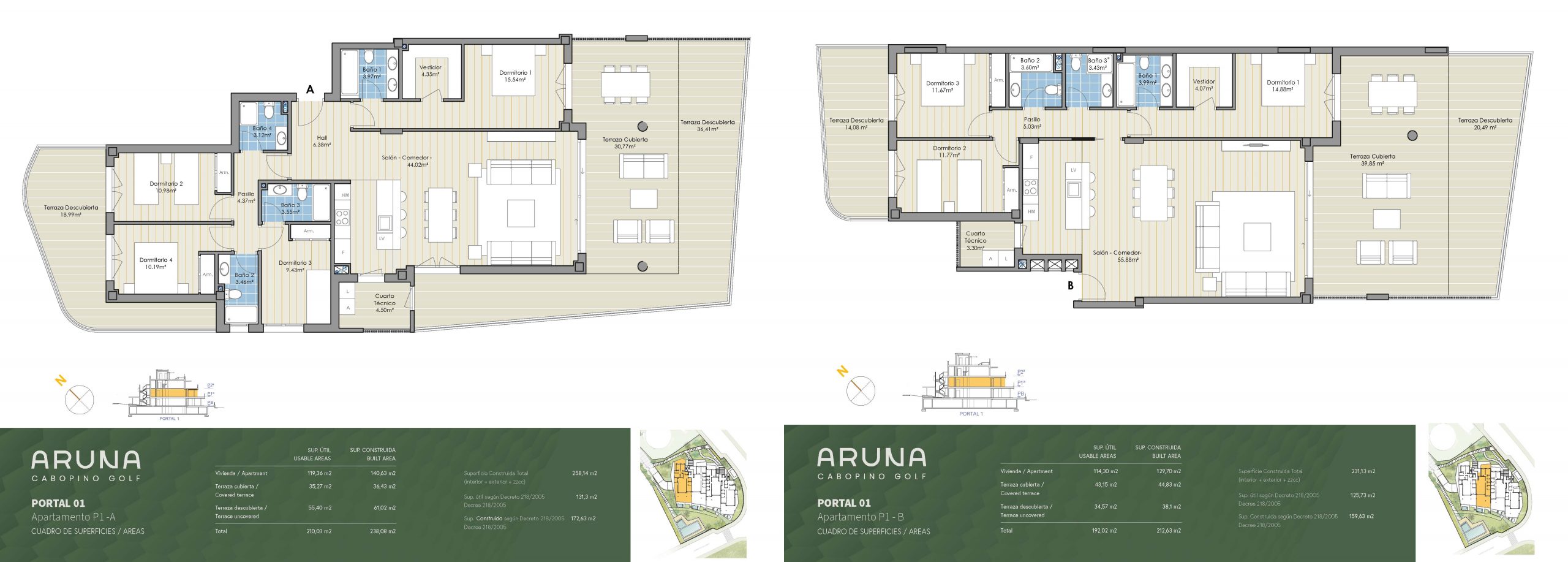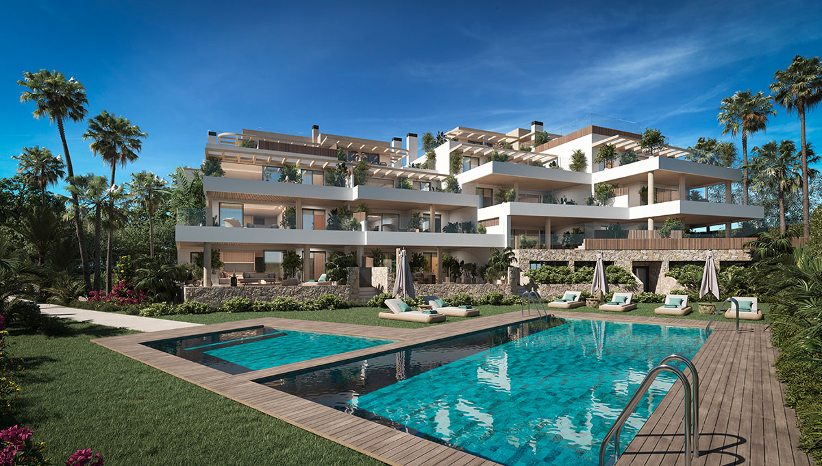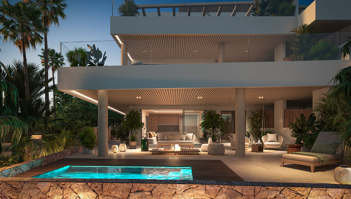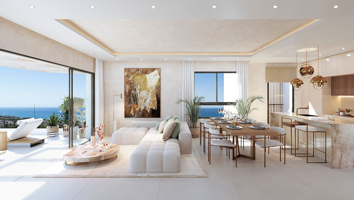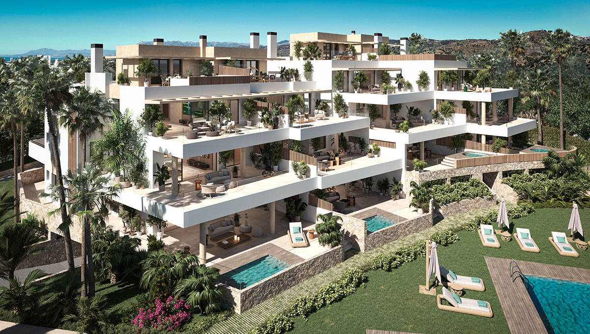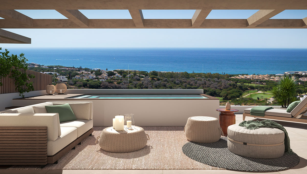 ARUNA epitomizes the zenith of contemporary life in Marbella, renowned for its serene ambiance and breathtaking panoramic vistas that stretch from the lush pine canopies to the shimmering Mediterranean Sea. This exclusive enclave features 12 state-of-the-art apartments and penthouses, offering 3 to 4 bedrooms, most with en-suite bathrooms, meticulously arranged to maximize the uninterrupted views of the sea and mountains, distributed across two distinct buildings. Nestled in Cabopino, an area famed for its stunning beaches—hailed as the most beautiful natural beaches in Marbella—and its ecologically valuable dune reserve, ARUNA stands out as one of the most coveted locations on the Costa del Sol. Residents enjoy a plethora of nearby entertainment options and amenities. The private gated community boasts secure perimeter fencing, lush green spaces, a communal pool, sauna, gym, and a co-working area.